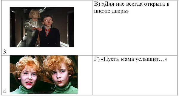 Установите соответствие между кадром из мультфильма( фильма), песней из него, и тем, о каких правах ребенка в них  может идти речь, указав соответствующую статью из конвенции о правах ребенка.